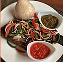 If you really want to have a feel of Ghana, fermented corn and cassava dough with grilled fish, tomato pepper, kpakpo [pron. papo] shito, shrimp shito garnished with peppers and onions might be the right pick!